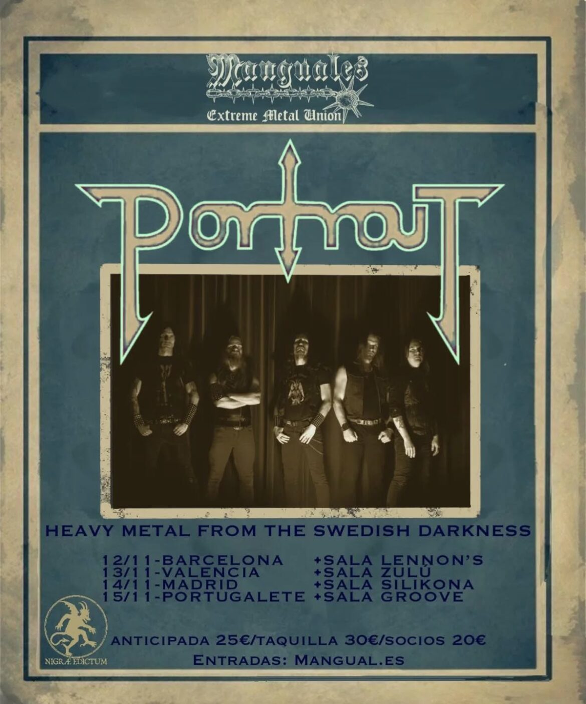 La banda sueca de heavy metal oscuro, Portrait, regresará en Noviembre a los escenarios españoles con una gira que promete convertirse en una de las citas imprescindibles para los seguidores del heavy metal de corte clásico y atmósfera ocultista. Formados en 2005 en Suecia por el guitarrista Christian Lindell, Portrait se ha consolidado como una de las bandas más representativas del heavy metal tradicional europeo. Su sonido, profundamente influenciado por el misticismo del heavy metal oscuro con cierta orientación hacia el speed metal. Desde su debut con “Portrait” en 2008, la banda comenzó a llamar la atención gracias a un sonido que recuperaba la esencia del heavy metal de los años ochenta, guitarras rápidas, atmósferas sombrías y las características voces agudas de su vocalista.