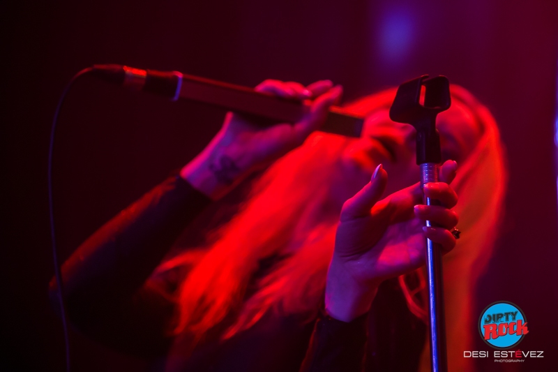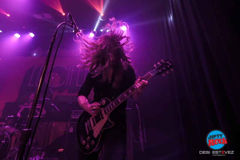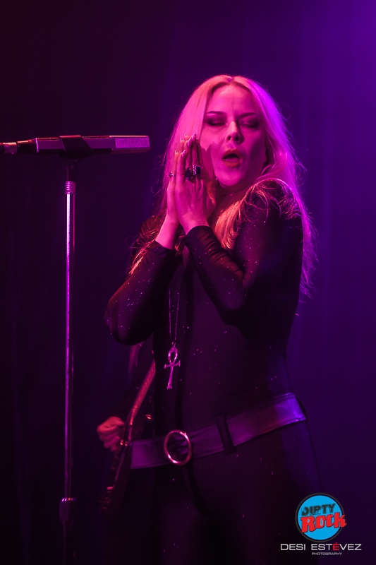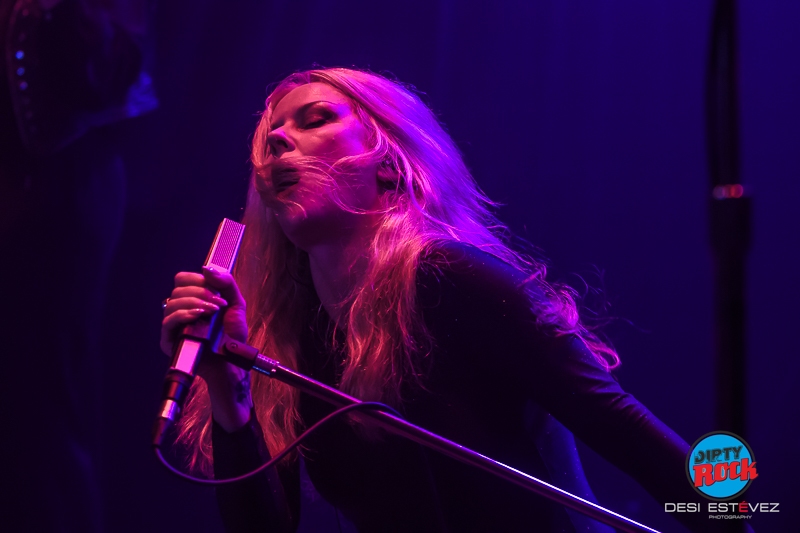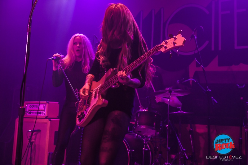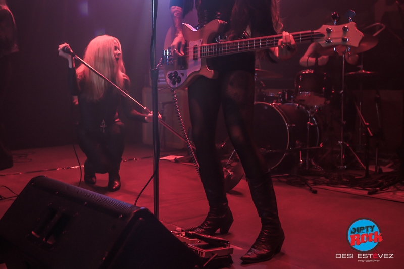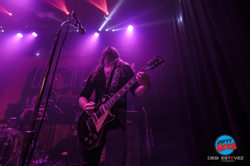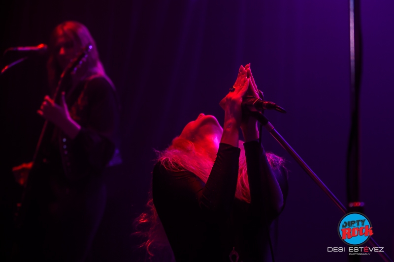 Tras la irrupción de los músicos, la estrella de la formación, Johanna Sadonis, aparece rotunda como una carroza funeraria fabricada con diamantes; viste negro riguroso y, en el centro, un luminoso colgante desprende brillos aulladores como los colmillos de un arcano vampiro egipcio: el símbolo de Anubis ( el mismo que porta Claudia en la espalda de su chaqueta y en el cordón de su bajo). La banda acomete un tema ‘ ad hoc’: el single de debut que, en 2015, lanzarían a través del mítico sello Rise Above (hogar del mejor occult rock internacional). “Anubis”, con su magia ominosa que describe el inframundo esotérico, constituye uno de los grandes leitmotivs de la banda; el más allá de las momias, la Cinópolis de la gran deidad antropomórfica funeraria…. ¡ Y es tal impacto de las fuerzas combinadas de la banda y Johanna, que toda la sala ruge de placer! En pocos instantes, cuando llega el estribillo “cuál es el demonio que está en mi interior”, Lucifer ya ha conquistado al público que abarrota la Upload.