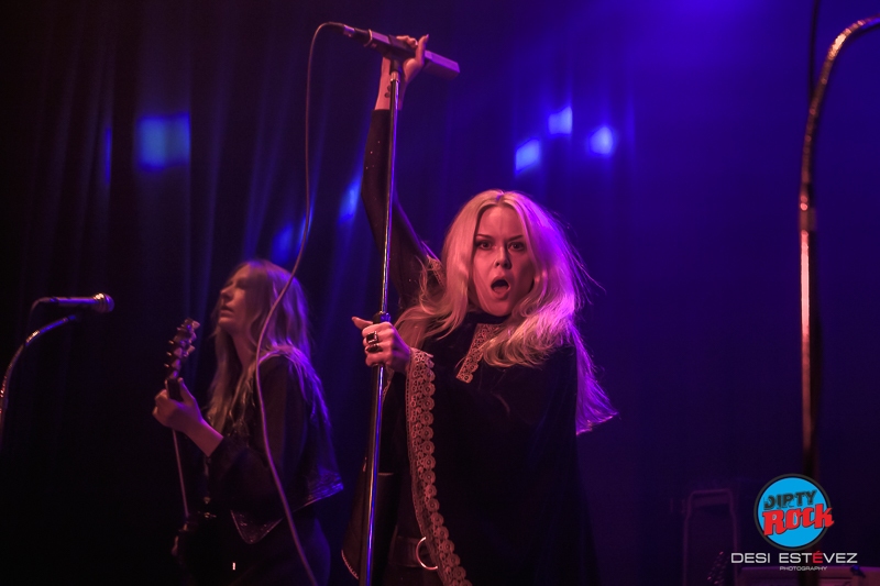 El espectáculo continúa con uno de los grandes perigeos de la noche, acercando aún más si cabe a la banda a un público ya de por sí cautivado. Y la tónica que sigue va en sintonía con la plenitud de los músicos: riffs pesados a mayores gloria de Black Sabbath, momento de psicodelia oscura hard rock y esos monumentos de solos que logra Max. Johanna como una nube de carmín sexy, y las exultantes Claudia y Coralie brillantes como los faros solares de un extraño carrusel extraterrestre.