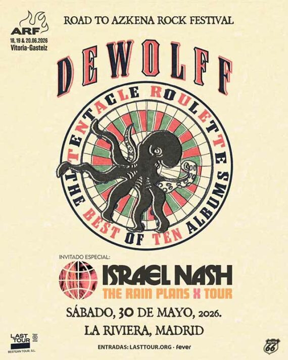Road to Azkena Rock Festival presenta en Madrid una noche de celebración para ir calentando motores con dos grupos que son puro ARF: DeWolff en su única fecha en sala, con un repertorio especial de lo mejor de sus diez álbumes de estudio, e Israel Nash y su banda, en concierto exclusivo, celebrando los diez años de su obra cumbre, ‘Rain Plans’ el 30 de mayo en La Riviera, Madrid.