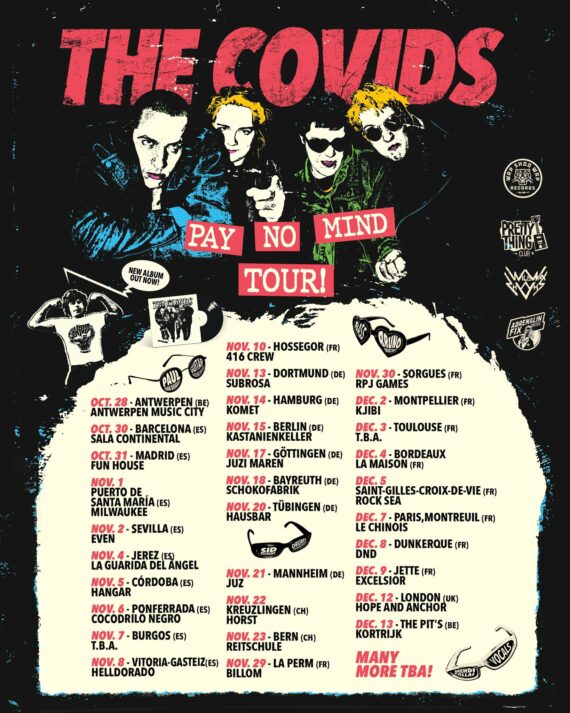 The Covids un año más regresan a nuestro país, no se les debe tratar mal por estos lares ya que no pierden la oportunidad de visitarnos. La formación proveniente de Amsterdam en esta ocasión vienen para presentarnos su último trabajo “Pay No Mind”. Joviales y divertidos, un soplo de aire fresco al punk rock de la década de los setenta.
